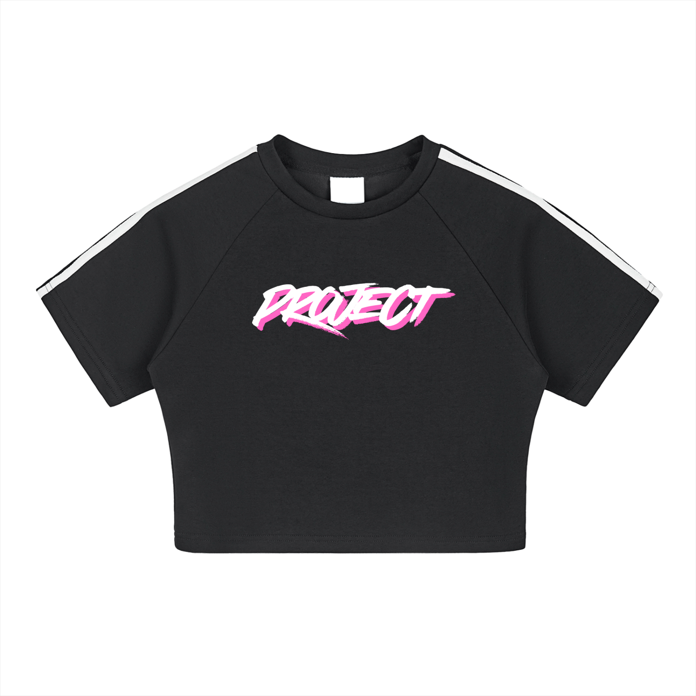 The raglan sleeves and cropped cut give it a sleek, modern look perfect for summer wear or layering into autumn fits, finished with a bold 40×52 cm front print for standout seasonal style.